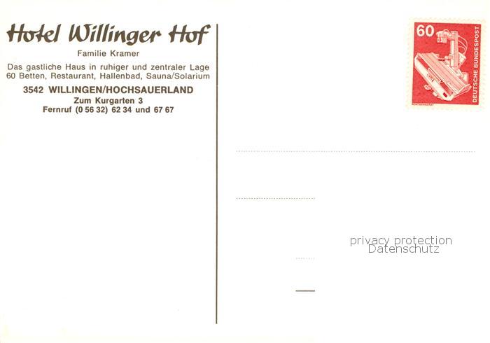 73844006 alte Postkarte Willingen Sauerland Hotel Willinger Hof Gastraeume postalisch gelaufen Erhaltung siehe scans [WerneD78] KatCode: 11110006635022