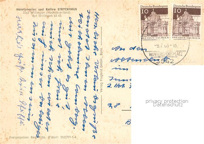 73103501 alte Postkarte Willingen Sauerland Hotelpension Kaffee Stryckhaus postalisch gelaufen Erhaltung siehe scans [KathaD81] KatCode: 11110006635022