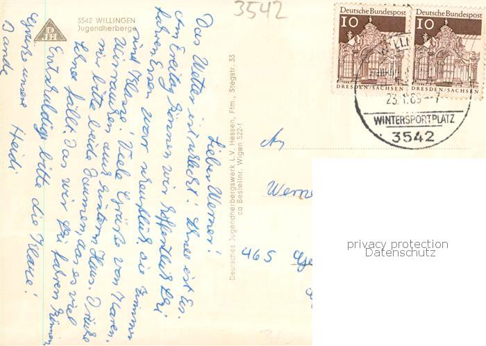 73870246 alte Postkarte Willingen Sauerland Jugendherberge Muehlenkopfschanze Tagesraum postalisch gelaufen Fliegeraufnahme Erhaltung siehe scans [WerneD78] KatCode: 11110006635022
