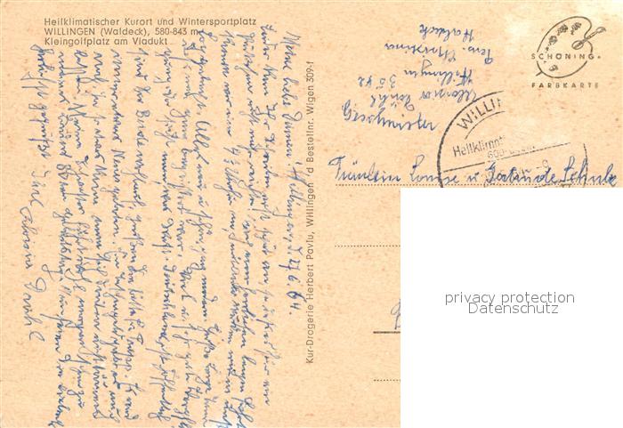 73018816 alte Postkarte Willingen Sauerland Kleingolfplatz Viadukt postalisch gelaufen Erhaltung siehe scans [NatalD47] KatCode: 11110006635022