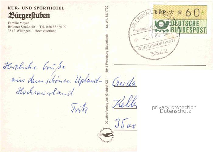 72751147 alte Postkarte Willingen Sauerland Kur und Sporthotel Buergerstuben postalisch gelaufen Erhaltung siehe scans [FriedD77] KatCode: 11110006635022