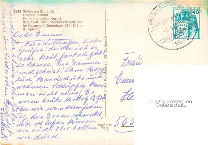 73814942 alte Postkarte Willingen Sauerland Kurgarten postalisch gelaufen Erhaltung siehe scans [WerneD78] KatCode: 11110006635022