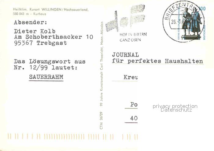 72835199 alte Postkarte Willingen Sauerland Kurhaus postalisch gelaufen Erhaltung siehe scans [NatalD47] KatCode: 11110006635022