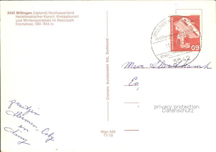 72136901 alte Postkarte Willingen Sauerland Kurklinik Viadukt Kurkonzert Drachenflieger Hermecketal postalisch gelaufen Erhaltung siehe scans KatCode: 11110006635022