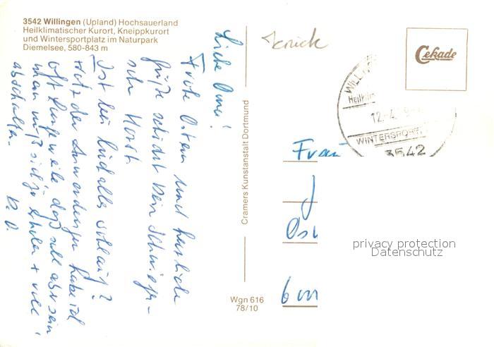 73204416 alte Postkarte Willingen Sauerland Kurort Wintersportplatz Naturpark Diemelsee Hallenbad Alter Hagen Drachenfliegen postalisch gelaufen Erhaltung siehe scans [FriedD77] KatCode: 11110006635022