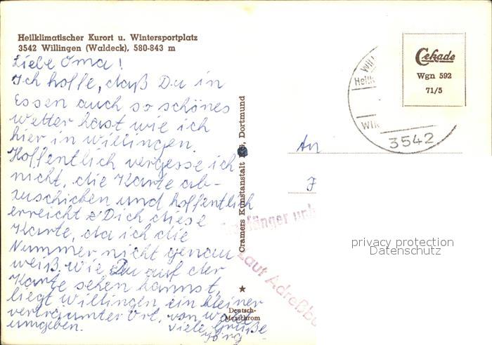 72423057 alte Postkarte Willingen Sauerland Kurort Wintersportplatz postalisch gelaufen Erhaltung siehe scans KatCode: 11110006635022