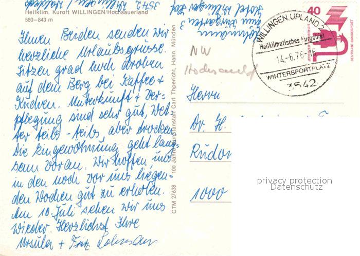 72907380 alte Postkarte Willingen Sauerland Kurpark postalisch gelaufen Erhaltung siehe scans [AndreD76] KatCode: 11110006635022