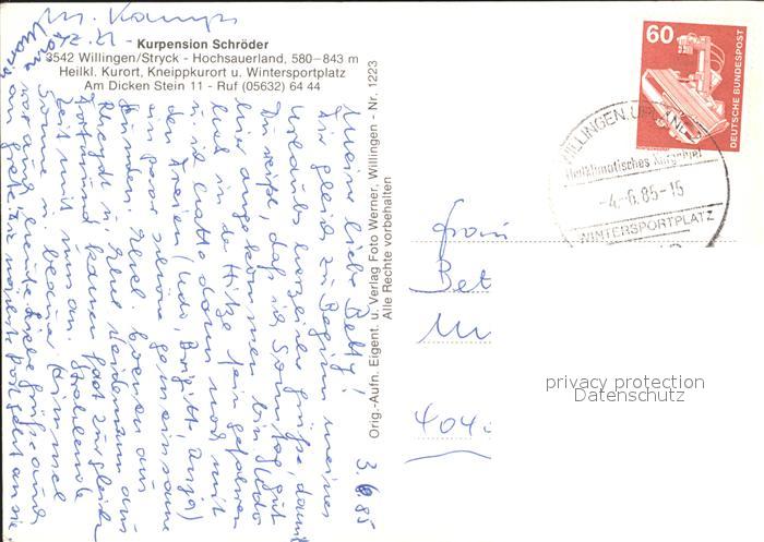 72119279 alte Postkarte Willingen Sauerland Kurpension Schroeder postalisch gelaufen Erhaltung siehe scans KatCode: 11110006635022