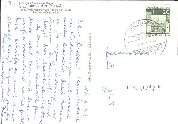 71972634 alte Postkarte Willingen Sauerland Kurpension postalisch gelaufen Erhaltung siehe scans KatCode: 11110006635022