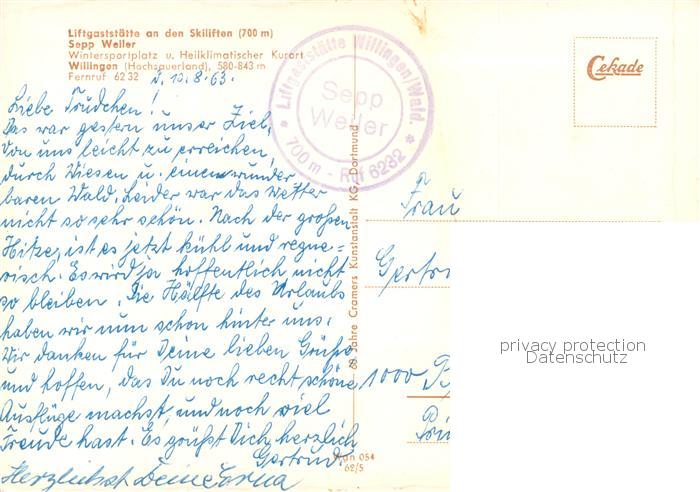 73767848 alte Postkarte Willingen Sauerland Liftgaststaette an den Skiliften postalisch gelaufen Erhaltung siehe scans [FriedD77] KatCode: 11110006635022