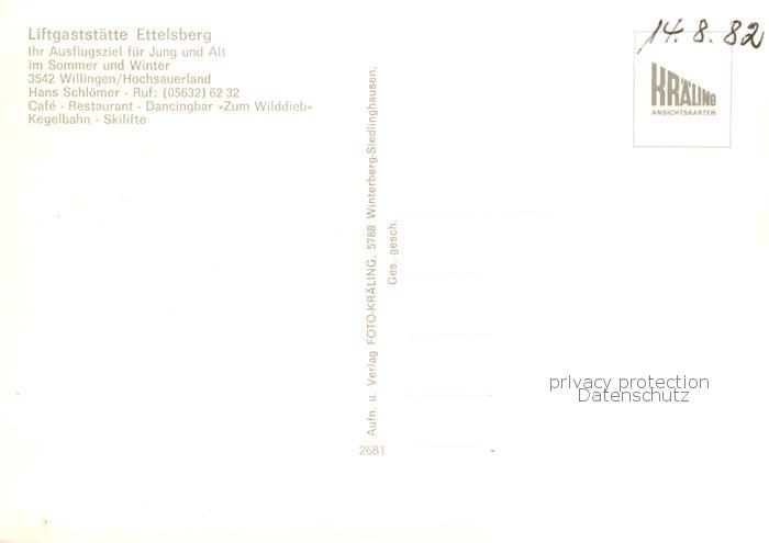 73838118 Willingen Sauerland Liftgaststaette Ettelsberg postalisch nicht gelaufen Erhaltung siehe scans [WerneD78] KatCode: 11110006635022