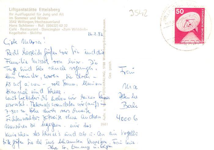 73933776 alte Postkarte Willingen Sauerland Liftgaststaette Ettelsberg postalisch gelaufen Erhaltung siehe scans [WerneD78] KatCode: 11110006635022