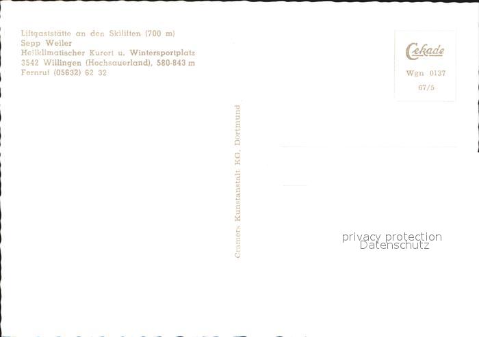 72560496 Willingen Sauerland Liftgaststaette Sepp Weiler Kurort postalisch nicht gelaufen Erhaltung siehe scans [AntonD74] KatCode: 11110006635022