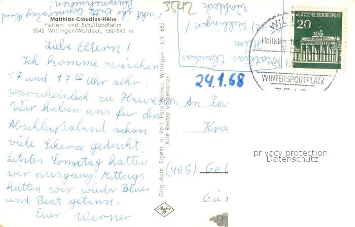73692452 alte Postkarte Willingen Sauerland Matthias Claudius Heim postalisch gelaufen Erhaltung siehe scans [WerneD78] KatCode: 11110006635022