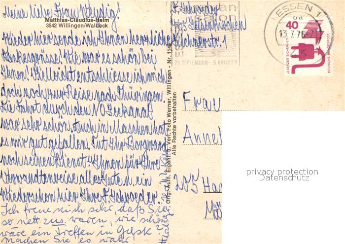 73173689 alte Postkarte Willingen Sauerland Matthias Claudius Heim postalisch gelaufen Erhaltung siehe scans [LiesaD40] KatCode: 11110006635022