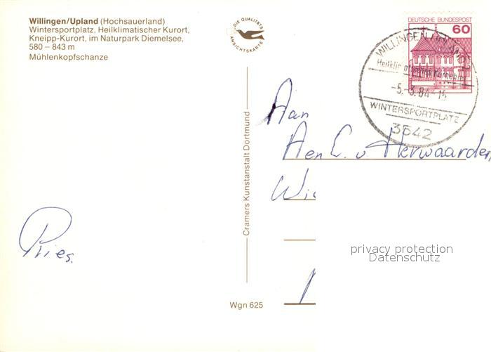 72936554 alte Postkarte Willingen Sauerland Muehlenkopfschanze Skispringen Wintersportplatz postalisch gelaufen Erhaltung siehe scans [FriedD77] KatCode: 11110006635022
