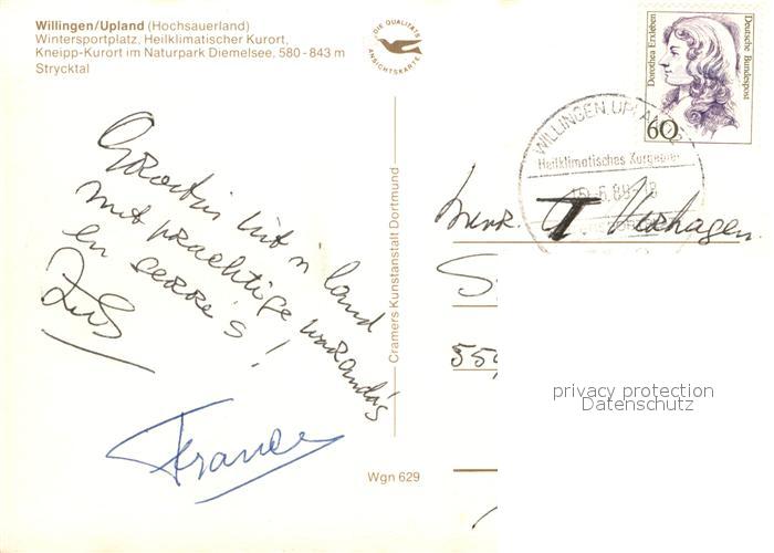 72929883 alte Postkarte Willingen Sauerland Naturpark Diemelsee Strycktal postalisch gelaufen Erhaltung siehe scans [WerneD78] KatCode: 11110006635022