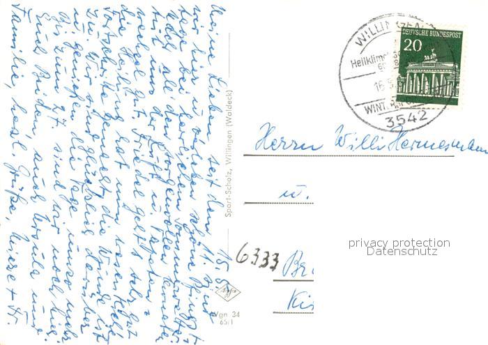 73249155 alte Postkarte Willingen Sauerland Ortsansicht mit Kirche Heilklimatischer Kurort Wintersportplatz postalisch gelaufen Erhaltung siehe scans [FriedD77] KatCode: 11110006635022