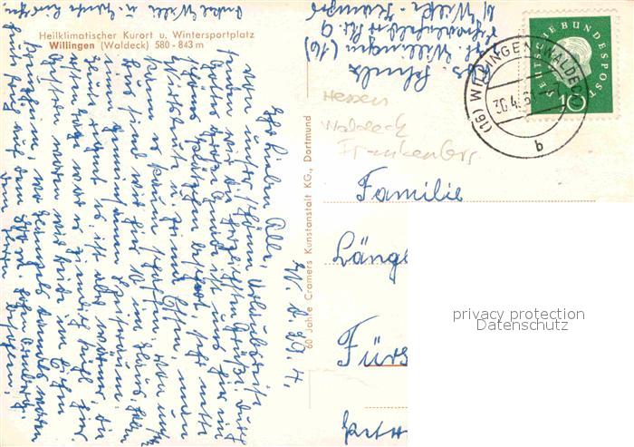 72888282 alte Postkarte Willingen Sauerland Ortsansicht mit Kirche Heilklimatischer Kurort postalisch gelaufen Erhaltung siehe scans [FriedD77] KatCode: 11110006635022