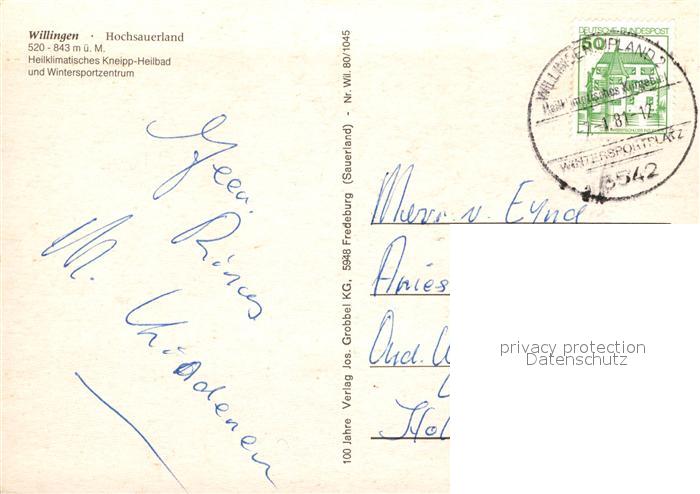 72930962 alte Postkarte Willingen Sauerland Panorama postalisch gelaufen Erhaltung siehe scans [WerneD78] KatCode: 11110006635022