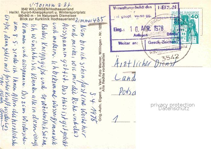 72917692 alte Postkarte Willingen Sauerland Panorama Blick zur Kurklinik Hochsauerland postalisch gelaufen Erhaltung siehe scans [FriedD77] KatCode: 11110006635022