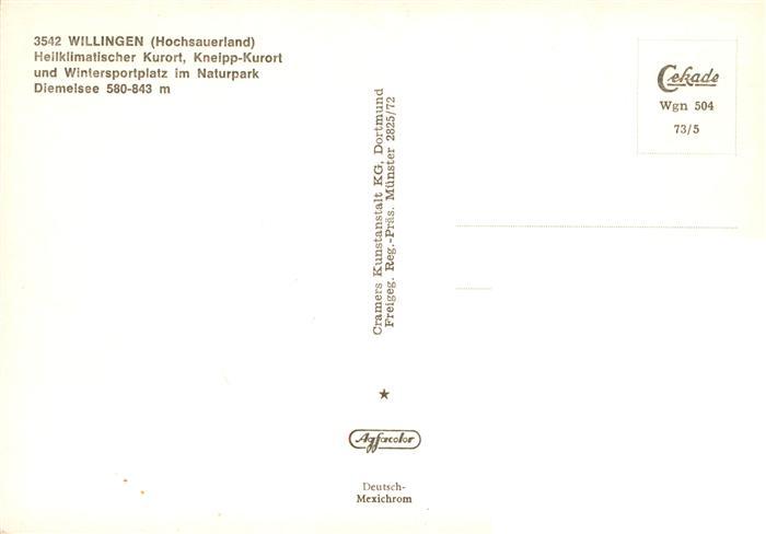 73942177 Willingen Sauerland Panorama Heilklimatischer Kneipp-Kurort Wintersportplatz Naturpark Diemelsee postalisch nicht gelaufen Fliegeraufnahme Erhaltung siehe scans [FriedD77] KatCode: 11110006635022