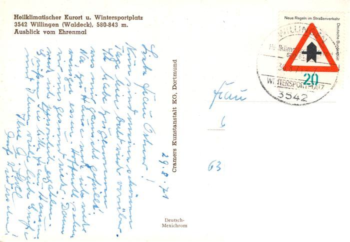 73938773 alte Postkarte Willingen Sauerland Panorama Heilklimatischer Kurort und Wintersportplatz Ausblick vom Ehrenmal postalisch gelaufen Erhaltung siehe scans [FriedD77] KatCode: 11110006635022