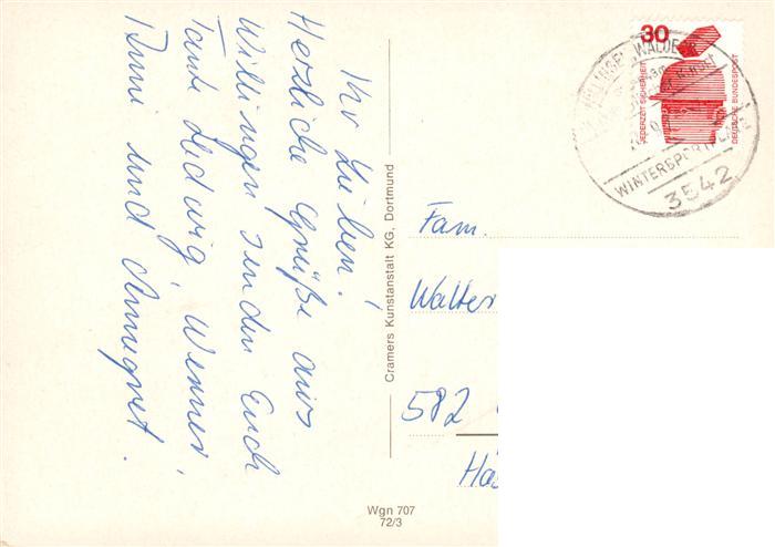 73920997 alte Postkarte Willingen Sauerland Panorama Kath Kirche Blick vom Ettelsberg Paradies Strycktal Hermeketal Am Kurgarten Totale Kleingolfplatz postalisch gelaufen Erhaltung siehe scans [WerneD78] KatCode: 11110006635022