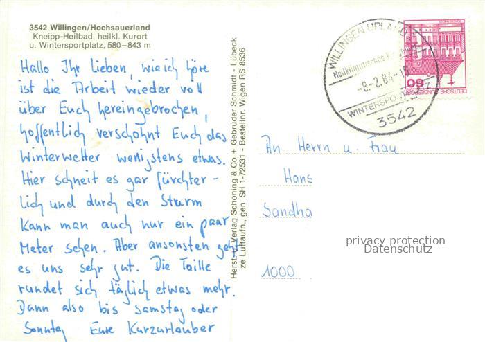 74020675 alte Postkarte Willingen Sauerland Panorama Kneipp-Heilbad Kurort Wintersportplatz Hotel Sauerland Stern postalisch gelaufen Fliegeraufnahme Erhaltung siehe scans [FriedD77] KatCode: 11110006635022