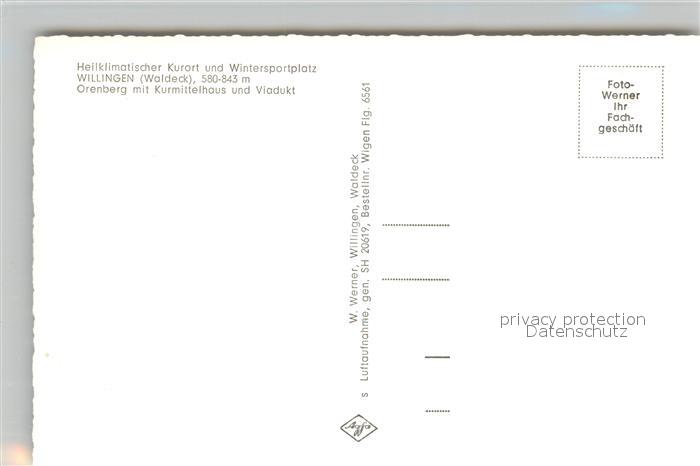 72948074 Willingen Sauerland Panorama Orenberg mit Kurmittelhaus und Viadukt Fliegeraufnahme postalisch nicht gelaufen Erhaltung siehe scans [FriedD77] KatCode: 11110006635022