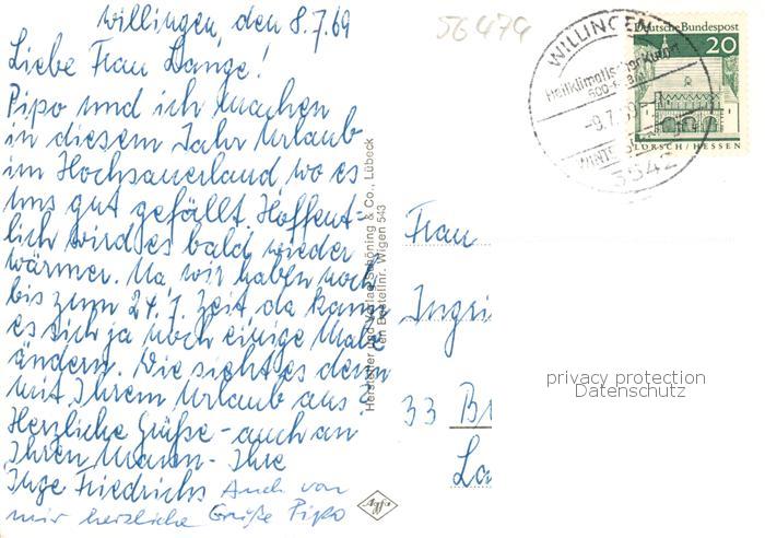 73854232 alte Postkarte Willingen Sauerland Panorama Trinkhalle Kurgarten mit Kurhalle Wassertretbecken postalisch gelaufen Erhaltung siehe scans [WerneD78] KatCode: 11110006635022