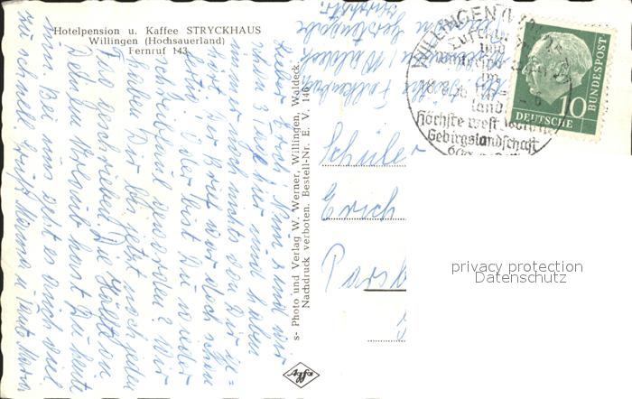 72200233 alte Postkarte Willingen Sauerland Pension Hotel Cafe Stryckhaus postalisch gelaufen Erhaltung siehe scans KatCode: 11110006635022