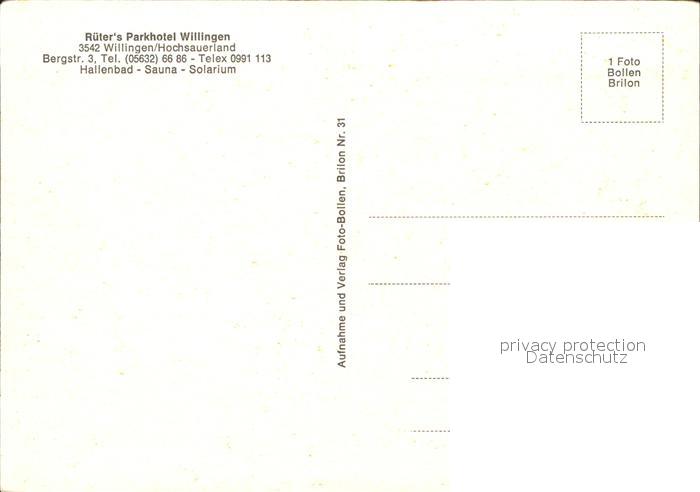 71893505 Willingen Sauerland Rueter Parkhotel Willingen postalisch nicht gelaufen Erhaltung siehe scans KatCode: 11110006635022