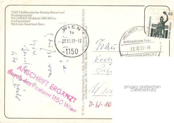 73169582 alte Postkarte Willingen Sauerland Sauerland Stern Heilklimatischer Kneipp Kurort Fliegeraufnahme postalisch gelaufen Erhaltung siehe scans [FriedD77] KatCode: 11110006635022