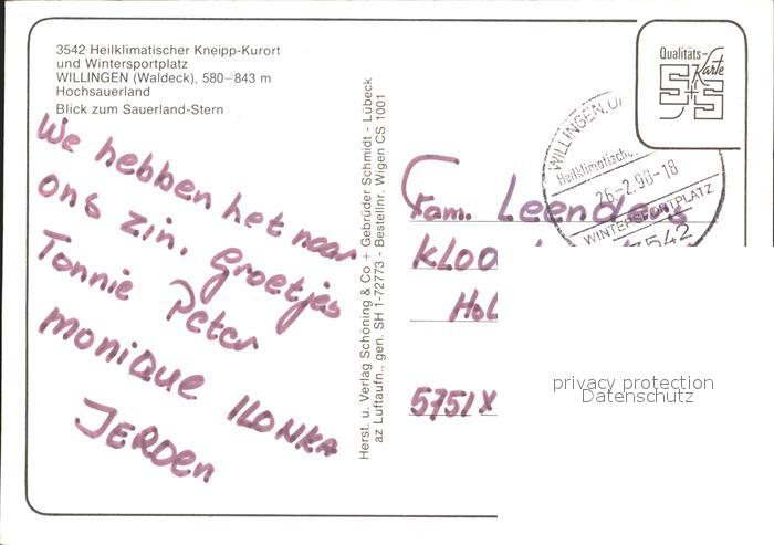72223688 alte Postkarte Willingen Sauerland Sauerland- Stern postalisch gelaufen Erhaltung siehe scans KatCode: 11110006635022