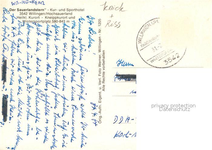 73018813 alte Postkarte Willingen Sauerland Sauerlandster Hotel postalisch gelaufen Erhaltung siehe scans [NatalD47] KatCode: 11110006635022