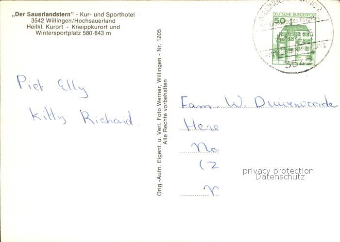 72518787 alte Postkarte Willingen Sauerland Sauerlandstern Sporthotel postalisch gelaufen Erhaltung siehe scans KatCode: 11110006635022