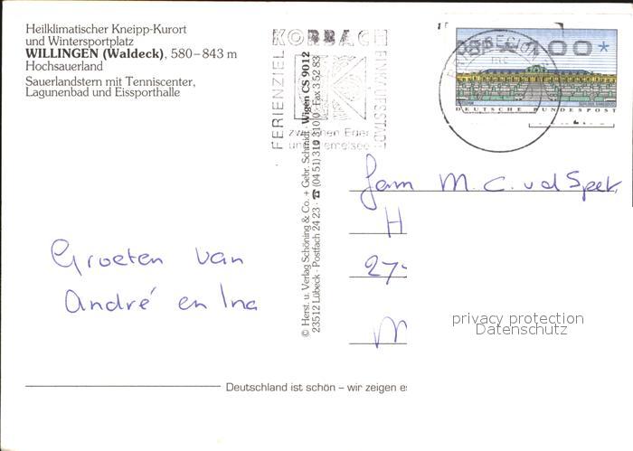 72504406 alte Postkarte Willingen Sauerland Sauerlandstern Tenniscenter postalisch gelaufen Erhaltung siehe scans KatCode: 11110006635022