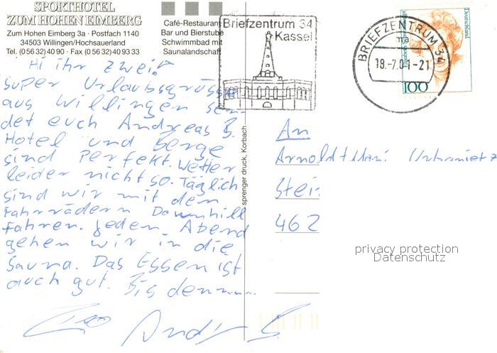 73678876 alte Postkarte Willingen Sauerland Sporthotel zum hohen Eimberg Fremdenzimmer Wellnessbereich postalisch gelaufen Erhaltung siehe scans [FriedD77] KatCode: 11110006635022