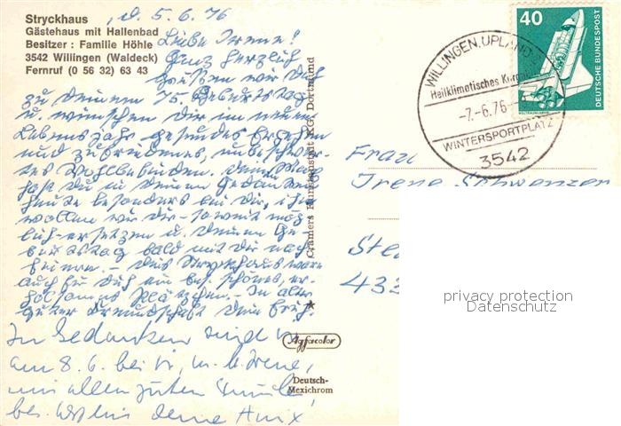 72847751 alte Postkarte Willingen Sauerland Stryckhaus Gaestehaus postalisch gelaufen Erhaltung siehe scans [FriedD77] KatCode: 11110006635022