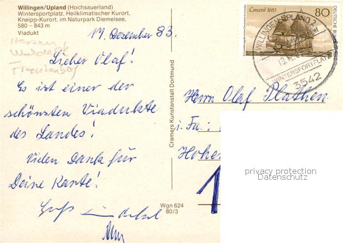 72991530 alte Postkarte Willingen Sauerland Viadukt postalisch gelaufen Erhaltung siehe scans [LiesaD40] KatCode: 11110006635022