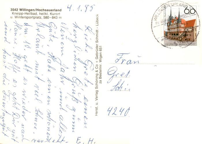 73935619 alte Postkarte Willingen Sauerland Winterpanorama Kurort Viadukt Skisprungschanze Luftaufnahmen postalisch gelaufen Erhaltung siehe scans [FriedD77] KatCode: 11110006635022