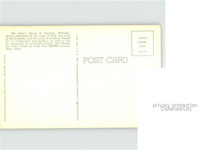 72398997 Wilmette The Baha`i House of Worship postalisch nicht gelaufen Erhaltung siehe scans KatCode: 14140150000000