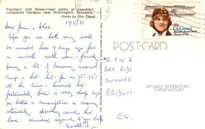 73130469 old postcard Wilmington Delaware Brunnen Park postalisch gelaufen Erhaltung siehe scans [KathaD81] KatCode: 14140080000000