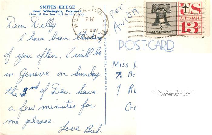 72944154 old postcard Wilmington Delaware Smiths Bridge postalisch gelaufen Erhaltung siehe scans [WerneD78] KatCode: 14140080000000