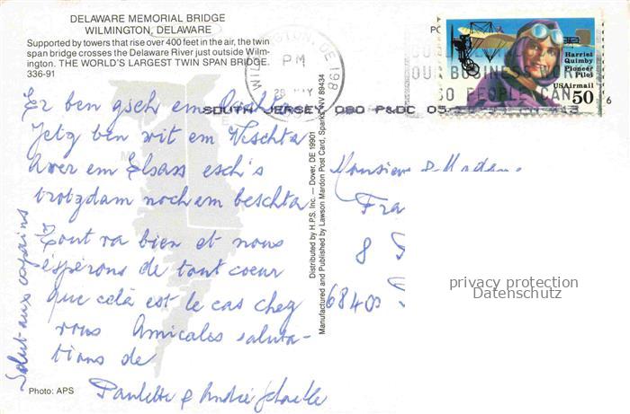 74056873 old postcard Wilmington Delaware USA Delaware Memorial Bridge Fliegeraufnahme postalisch gelaufen Erhaltung siehe scans [WerneD78] KatCode: 14140080000000