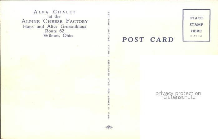 11688736 Wilmot Ohio Alpa Chalet Alpine Cheese Factory postalisch nicht gelaufen Erhaltung siehe scans KatCode: 14140370000000