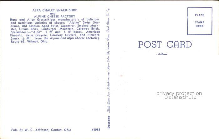 11688440 Wilmot Ohio Alpa Chalet Alpine Cheese Factory postalisch nicht gelaufen Erhaltung siehe scans KatCode: 14140370000000