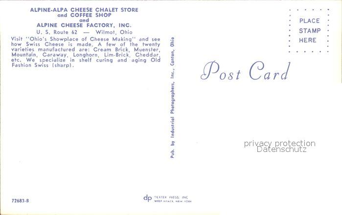 11688428 Wilmot Ohio Alpine Alpa Cheese Chalet Store Coffee Shop postalisch nicht gelaufen Erhaltung siehe scans KatCode: 14140370000000