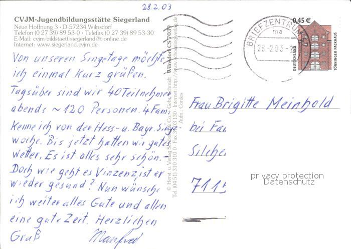 72369712 alte Postkarte Wilnsdorf CVJM-Jugendbildungsstaette Siegerland Fliegeraufnahme postalisch gelaufen Erhaltung siehe scans KatCode: 11110005970044